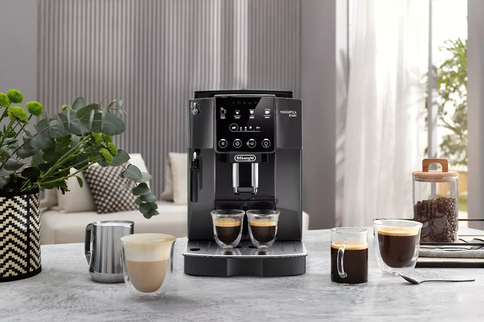 Enter the world of bean-to-cup coffee with De'Longhi Magnifica Start, providing everything you need to get started with your favourite espresso-based drinks at home. It features a user-friendly interface and sleek black finish, with a customised selection of coffee recipes delivered with just one touch.