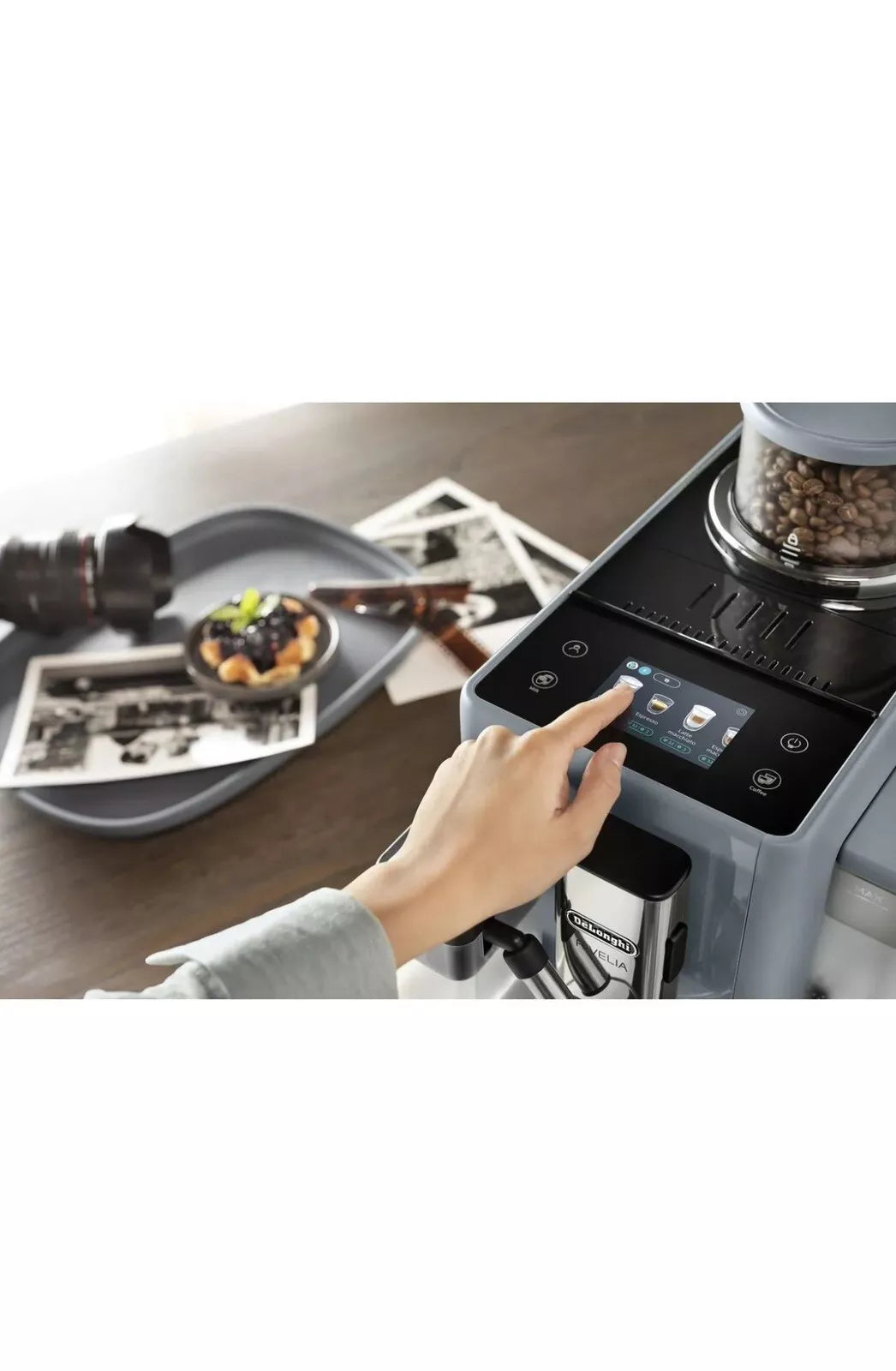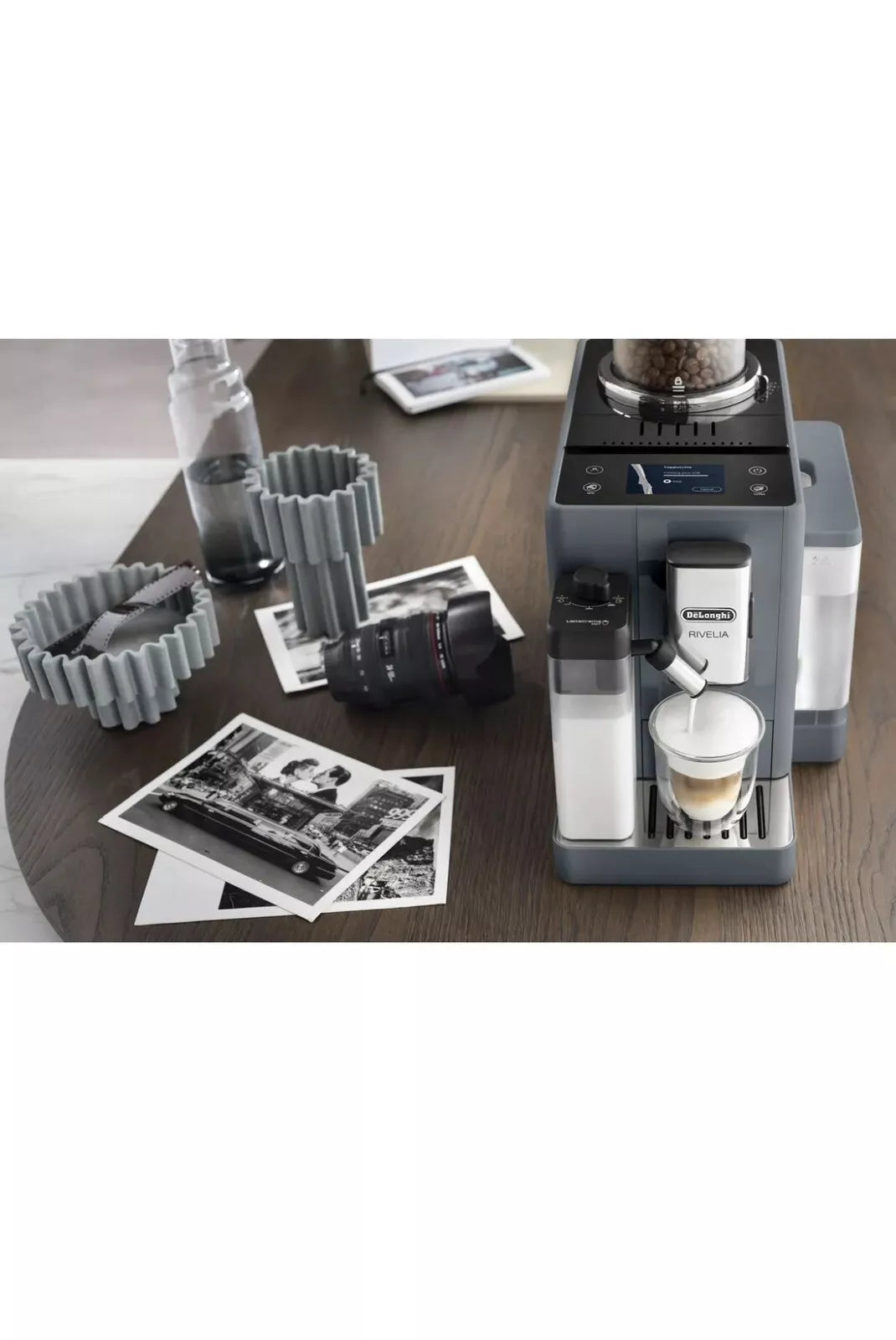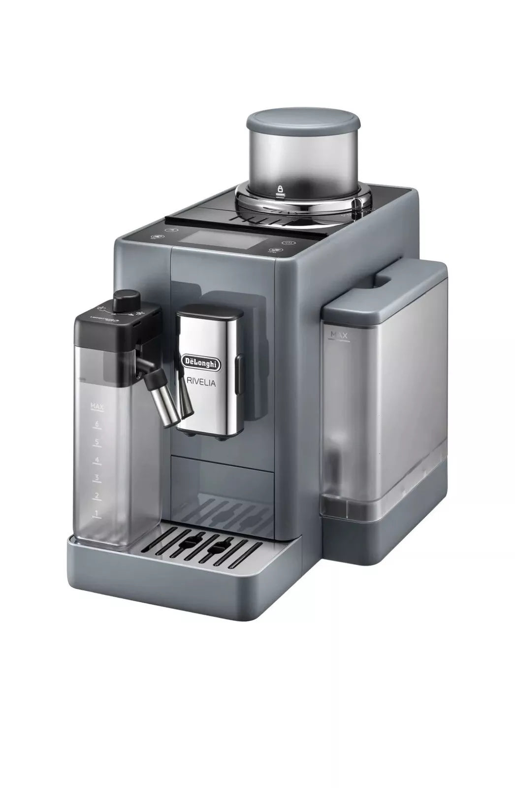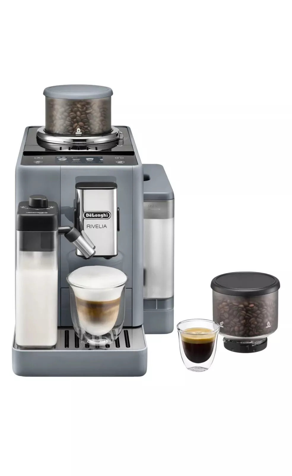 Encased in a sleek Pebble Grey/Black design, the Rivelia boasts a stylish yet compact footprint, making it a perfect fit for any kitchen décor. Its soft angles and modern aesthetic blend seamlessly with your kitchen style, proving that advanced technology and sophisticated design can coexist in harmony. Elevate your coffee ritual with the Rivelia, where every cup is crafted to perfection, reflecting your taste and lifestyle.