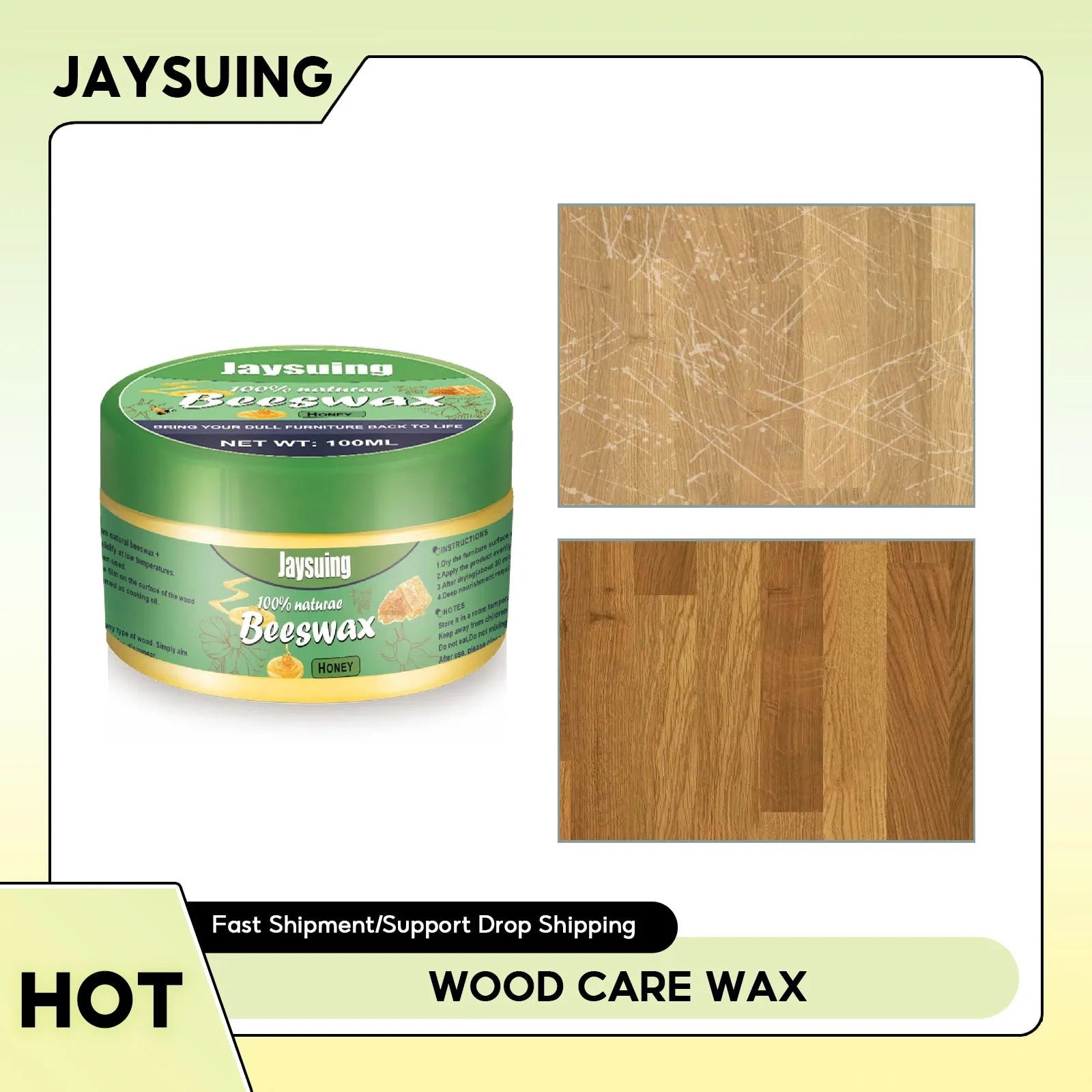 Jaysuing Furniture Polishing Beeswax Wooden Floor Cleaning Maintenance Scratch Removal Waterproof Brighten Care Wax Wood Seasoning Beewax 100ml
