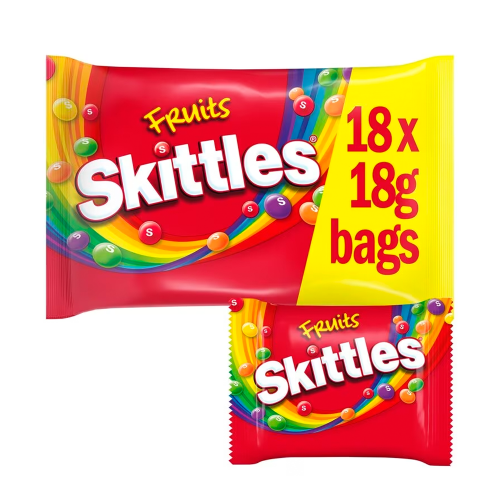 Skittles 18 Bags - 324g: Taste the rainbow with this pack of 18 vibrant, fruity Skittles bags. Available in our shop now. We offer UK and worldwide shipping. Secure yours today!